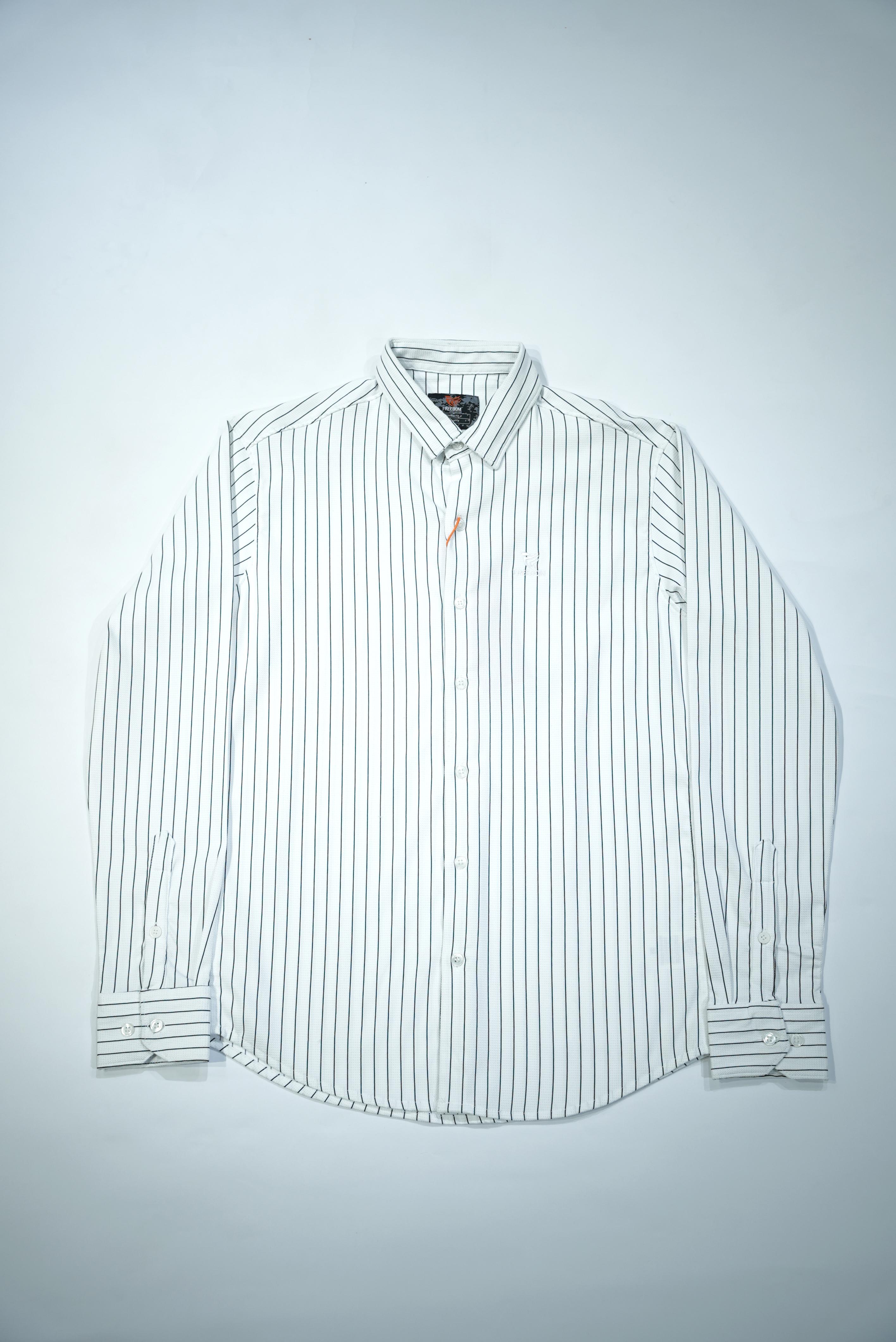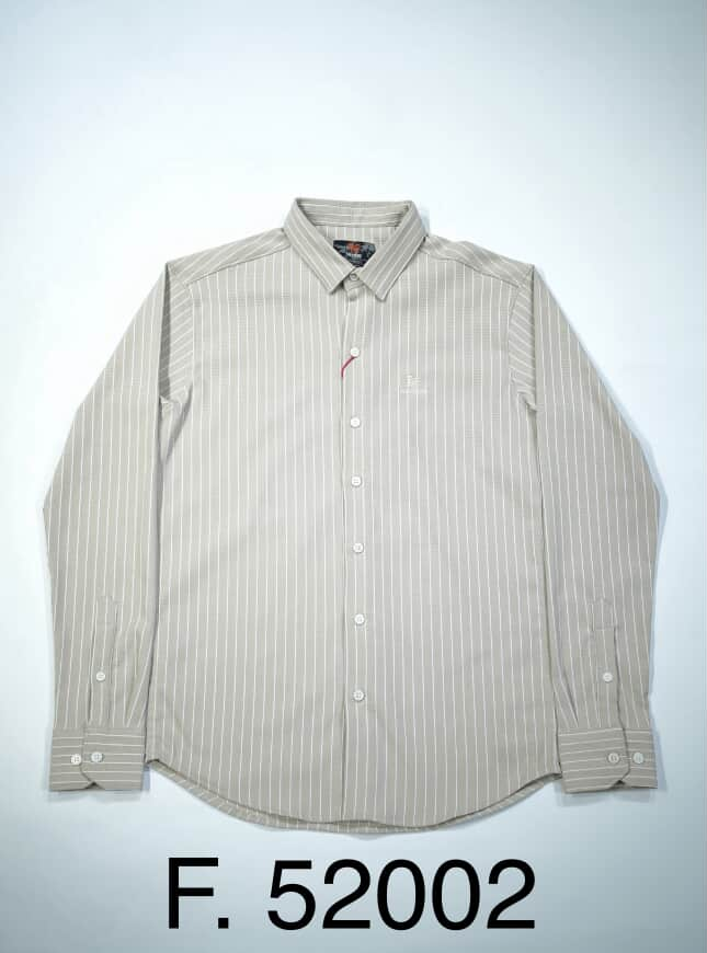 The Pinstripe Button-Down Shirt F-52002 combines classic sophistication with modern sensibility in a refined beige and white striped pattern. This versatile piece features a regular fit that allows easy movement while maintaining a polished look. The subtle collar design, buttoned cuffs, and clean placket create a smart, structured silhouette. Crafted from premium cotton, it ensures breathable comfort throughout the day. Perfect for pairing with chinos or dark denim for an effortlessly elevated style.